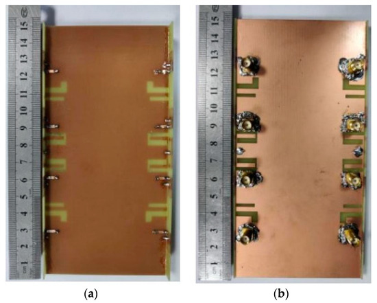 Photographs of the fabricated eight-antenna array: (a) top surface; (b) bottom surface.