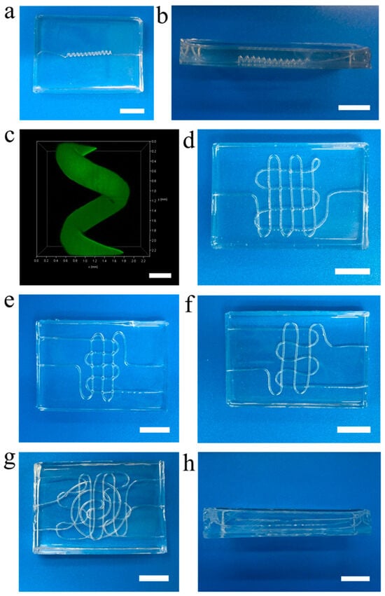 - Therriault, D.; White, S.R.; Lewis, J.A. Chaotic mixing in three-dimensional microvascular networks fabricated by direct-write assembly. Nat. Mater. 2003, 2, 265–271. [Google Scholar] [CrossRef]