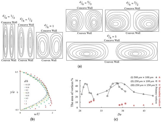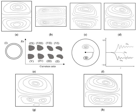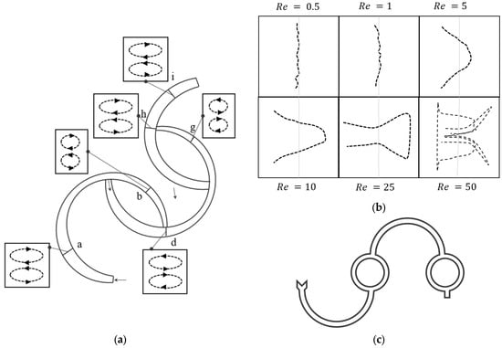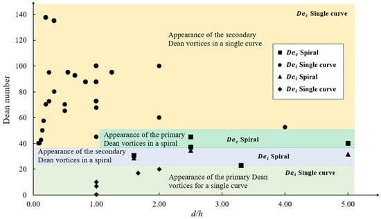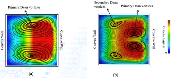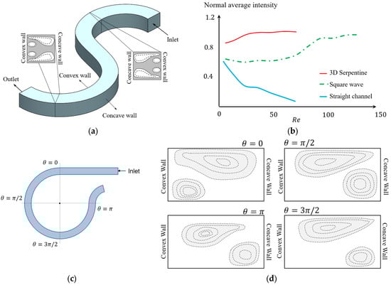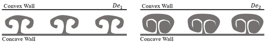 - Ligrani, P.M.; Niver, R.D. Flow Visualization of Dean Vortices in a Curved Channel with 40 to 1 Aspect Ratio. Phys. Fluids 1988, 31, 3605–3617. [Google Scholar] [CrossRef]