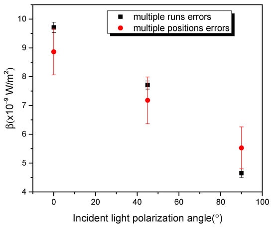 β values for one-position multiple measurements (runs) and multiple positions of oriented AuNPs/5CB samples when the laser polarization angle changed.