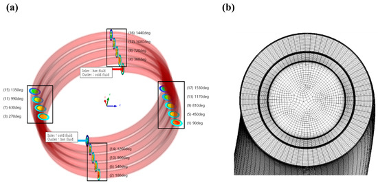 (a) Geometry and (b) mesh of double-pipe helical coil heat exchanger.