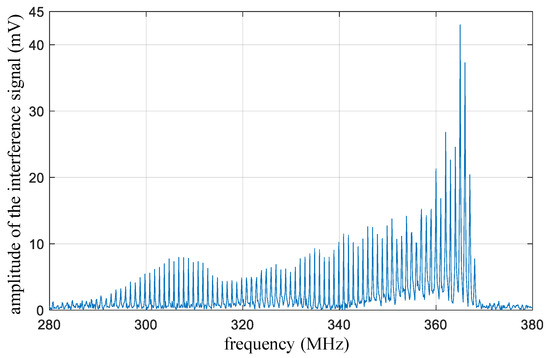The developed high-bandwidth laser heterodyne interferometer is used for an HIFU sound pressure measurement. A self-made HIFU transducer and a thin plastic reflective pellicle are placed in the water tank, and the interferometer measures the vibration of the pellicle through the optical window. The working frequency of the HIFU transducer is 1 MHz, which is close to the operating frequency of the HIFU treatment. The spectrum diagram of the interference signal measured at the focal point of the sound field at the maximum sound output power is shown in Figure 7. The interference signal exhibits an asymmetric distribution near the optical carrier frequency of 358 MHz, and the bandwidth of the interference signal reaches approximately 150 MHz.