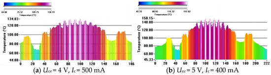 - Sun, X.; Zhang, X.; Sun, Y. Thermal characterization and design of GaAs HBT with heat source drifting effects under large current operating condition. Microelectron. J. 2020, 100, 104779. [Google Scholar] [CrossRef]