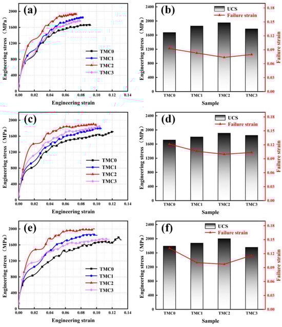 - Benefiting from the fine-grain strengthening and dispersion strengthening of LaB6, the quasi-static compressive strength of the TC4/LaB6 was found to be significantly higher than that of the pure TC4. However, it also led to a decrease in plasticity, especially when the LaB6 fraction was relatively high (1.0 wt.%), and the specimens fractured, even shortly after the end of the elastic segment.