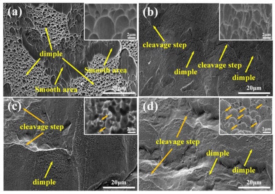 - Tabachnikova, E.D.; Podolskiy, A.V.; Bengus, V.Z.; Smirnov, S.N.; Bidylo, M.I.; Csach, K.; Miskuf, J.; Saitova, L.R.; Semenova, I.P.; Valiev, R.Z. Mechanical characteristics, failure regularities, and dimple structures on failure surfaces of Ti-6Al-4V ‘ELI’ ultrafine-grained alloy at temperatures from 300 to 4.2K. Mater. Sci. Eng. A 2009, 503, 106–109. [Google Scholar] [CrossRef]