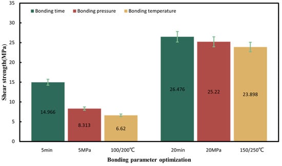 Shear strength summary for all the bonding parameters in the gradient bonding.