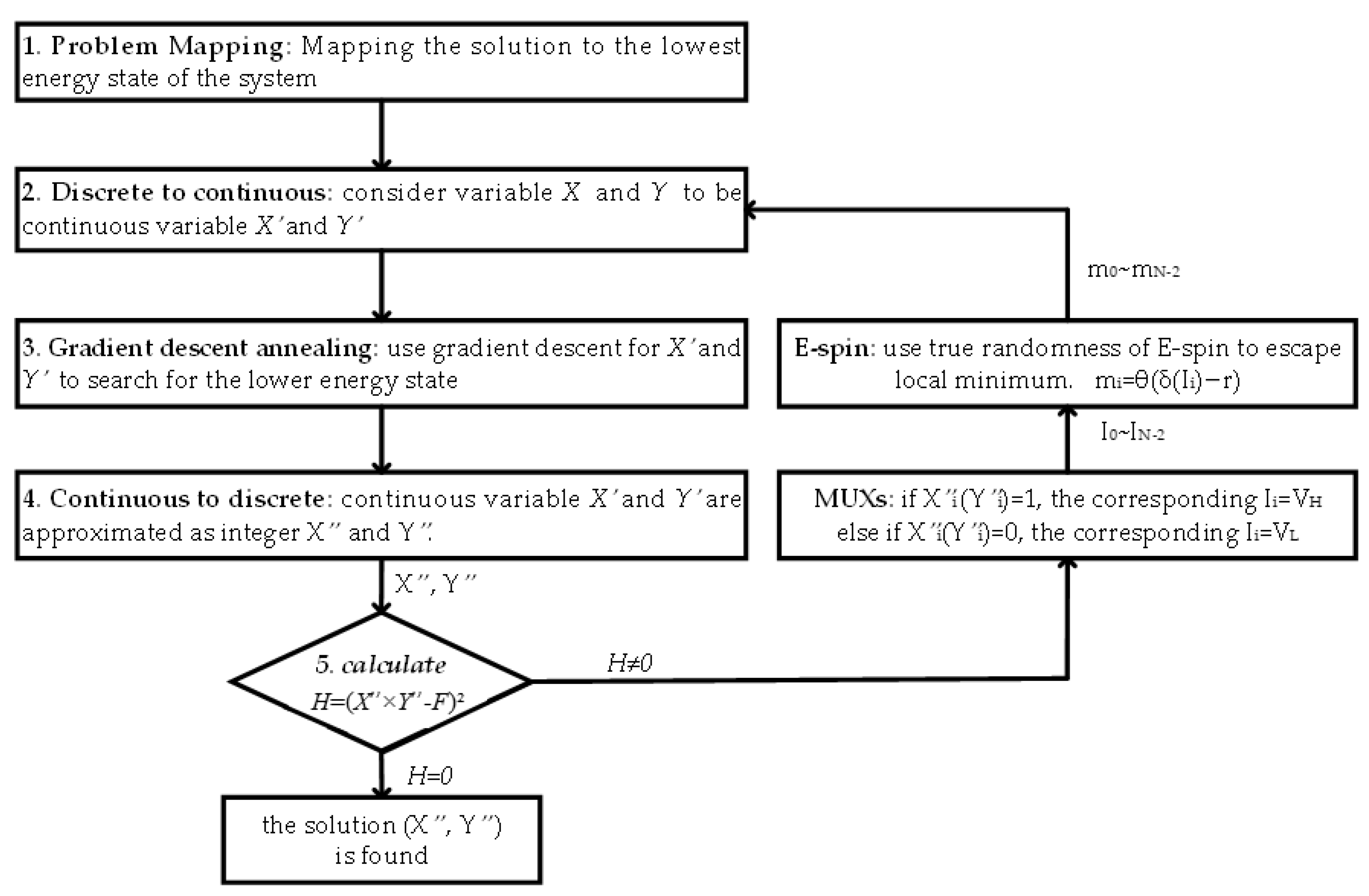 - Borders, W.A.; Pervaiz, A.Z.; Fukami, S.; Camsari, K.Y.; Ohno, H.; Datta, S. Integer factorization using stochastic magnetic tunnel junctions. Nature 2019, 573, 390–393. [Google Scholar] [CrossRef] [PubMed]