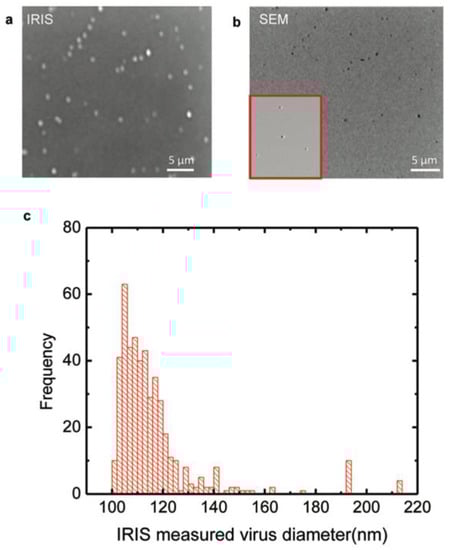 IRIS was developed for highly-sensitive, label-free, dynamic detection of molecular binding events in real-time and shown to have excellent sensitivity and reproducibility [,,]. Recently, due to considerable advancements in IRIS technology, single-particle IRIS (SP-IRIS) was developed to visualize individual viruses for sensitive virus diagnostics applications [,,]