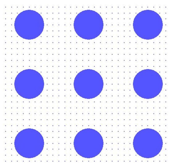 High lateral erosion of the isotropic etching process is conducive to the fabrication of microstructure tips. A parallel circular array was selected as the mask pattern. Both the diameter and spacing of each circle were 50 µm, as shown in Figure 3.