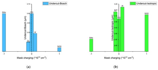 The correlation of undercut with mask charging. (a) The Bosch process. (b) The isotropic process.