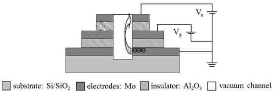 - Srisonphan, S.; Jung, Y.S.; Kim, H.K. Metal-oxide-semiconductor field-effect transistor with a vacuum channel. Nat. Nanotech. 2012, 7, 504–508. [Google Scholar] [CrossRef]