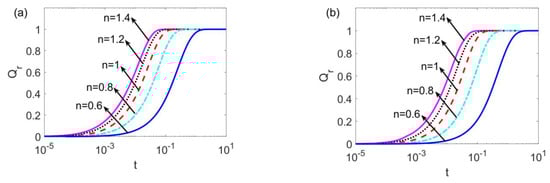 Using Equations (8) and (9), one has the dimensionless unsteady flow rate