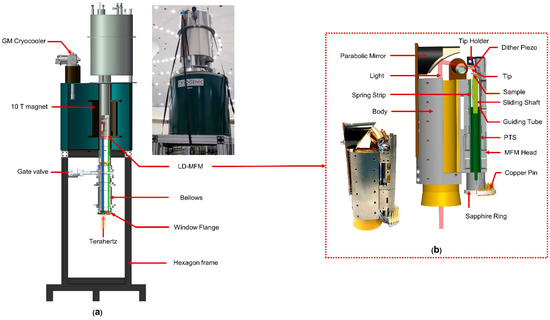 - Xiang, K.; Hou, Y.; Wang, J.; Zhang, J.; Feng, Q.; Wang, Z.; Meng, W.; Lu, Q.; Lu, Y. A piezoelectric rotatable magnetic force microscope system in a 10 T cryogen-free superconducting magnet. Rev. Sci. Instrum. 2022, 93, 093706. [Google Scholar] [CrossRef]