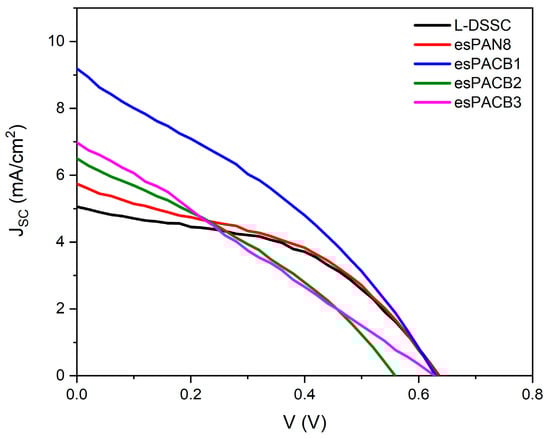 J–V curve of PAN membrane-based DSSC and PAN/ACB nanofiber composites.