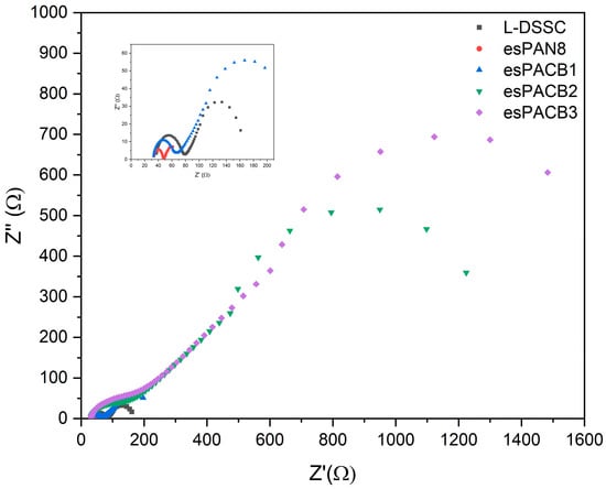 Nyquist plot of PAN membrane-based DSSC and PAN/ACB nanofiber composites.