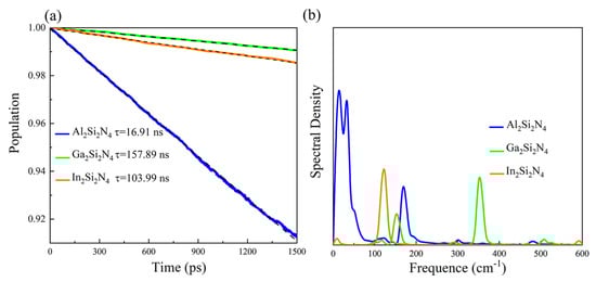 Excited–state carriers’ population decay (a) and spectral densities (b) of MSiN.