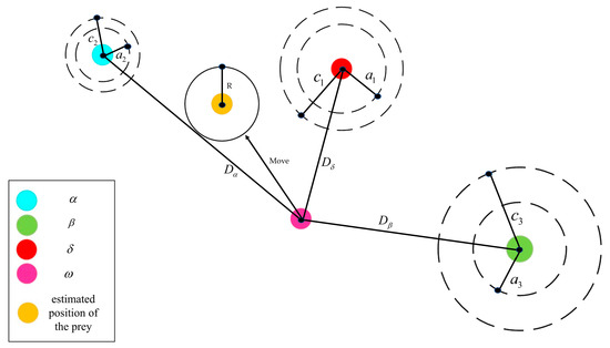 Figure 8. Schematic diagram of gray wolf location update [54].
