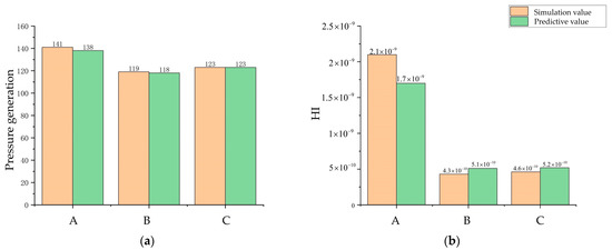 Figure 10. Algorithm prediction accuracy evaluation. (a) Comparison of the pressure generation prediction and the pressure generation simulation. (b) Comparison of the HI predictive value and the HI simulation value.