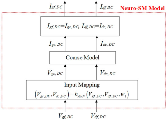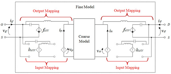 In Figure 2, the fine input signals are operated in the input mapping network instead of the coarse model. The DC response of the coarse model obtained with the coarse DC voltage signals matches that of the fine model, i.e., . The mapping network represents the nonlinear relationship between coarse signals and fine signals . The function is