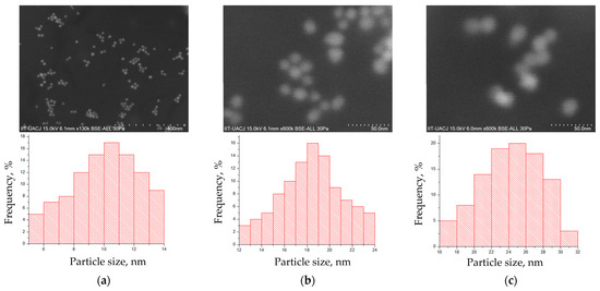 The method of producing silica-coated gold nanoparticles in our research was inspired by the procedure previously reported in [59], with some modifications. The process involved mixing an ethanolic solution of 4 mM cetyltrimethylammonium bromide (CTAB) and 1 mM tetraethyl orthosilicate (TEOS) with 3 mL of AuNPs and then exposing the mixture to ultrasonic treatment for 4 h. After that, the product was washed multiple times with deionized water and ethanol, collected through centrifugation, and dried at 70 °C for 8 h. This procedure was adapted to produce silica-coated gold nanoparticles for our study. The process for obtaining PEG-coated gold nanoparticles used in our study involved the preparation of a 30 mg/mL solution of PEG 3350 polymer by dissolving 45 mg of the polymer in 1.5 mL of deionized water. The resulting solution was mixed with 3 mL of AuNPs that had undergone prior centrifugation at 8000 rpm. The pH of the solution was then adjusted to between 9 and 10 using 0.1 M NaOH solution. The resulting mixture was subjected to magnetic stirring for 2 h and was dispersed with an ultrasonic homogenizer every 5 min during the first hour and every 15 min during the second hour. The excess PEG not adhered to the surface of the AuNPs was then removed by centrifugation for 30 min at 8000 rpm. This procedure was used as described in the previous literature [60].
