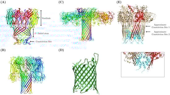 - Chen, M.; Khalid, S.; Mark, S.P.; Sansom, M.S.P.; Bayley, H. Outer Membrane Protein G: Engineering a Quiet Pore for Biosensing. Proc. Natl. Acad. Sci. USA 2008, 105, 6272–6277. [Google Scholar] [CrossRef]