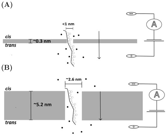 - Kasianowicz, J.J.; Brandin, E.; Branton, D.; Deamer, D.W. Characterization of Individual Polynucleotide Molecules Using a Membrane Channel. Proc. Natl. Acad. Sci. USA 1996, 93, 13770–13773. [Google Scholar] [CrossRef] [PubMed]