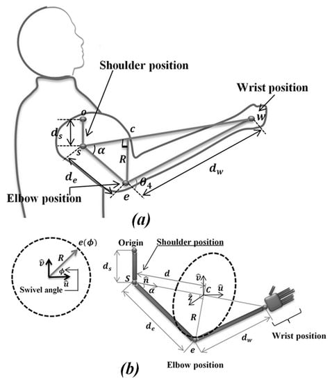 (a) Analysis of human upper limb motion. (b) Swivel angle () configuration [39].