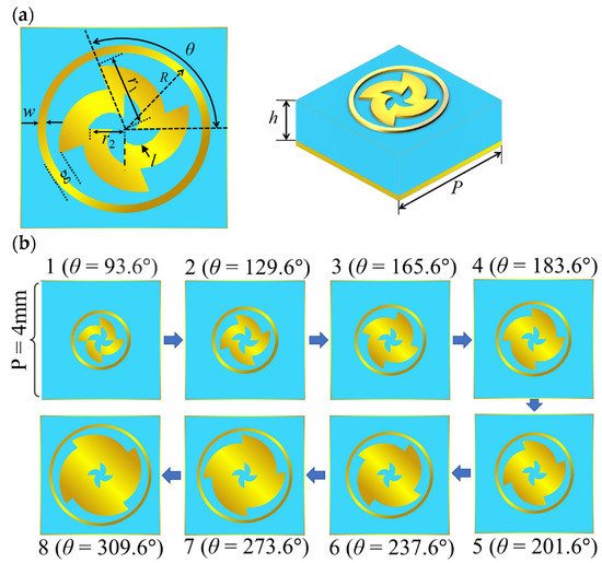 (a) Meta-atom structure; (b) schematic diagram of the variation of the meta-atom.
