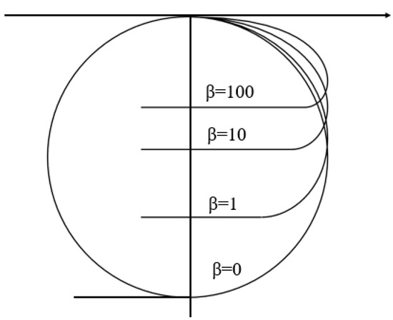 For the given values and , the droplet profile can be obtained by integrating simultaneously. Figure 2 shows the profiles of droplets in the range of 0–180° with different values. The profiles are a family of bundle center curves, which forms the admissible profile space of the axisymmetric heavy droplets.