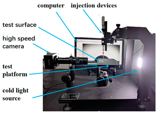 As shown in Figure 6, we used SDC-80 (Sindin, Dongguan, China) profile and contact angle measurement to characterize the droplets’ wettable parameters on microstructured surfaces. Deionized water and glycerol droplets were emitted from a needle onto the rough surface. A video camera was set on side of the droplet, and the optical axis of the camera was perpendicular to the droplet. After emitting droplets for ten minutes, we took pictures of the equilibrium droplets with different volumes and recorded the profiles, contact circle diameters and ACAs.