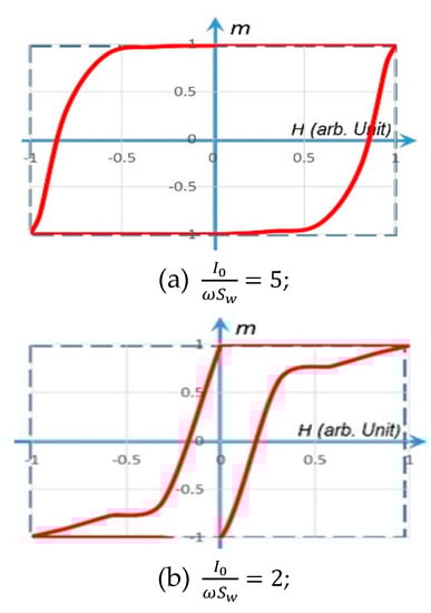 As a comparison, a typical m–H loop of real-world magnetic materials is displayed in Figure 5. The above simulations clearly validate Cushman’s conclusion that “the rotational model is applicable to the driving current of an arbitrary waveform” [3].