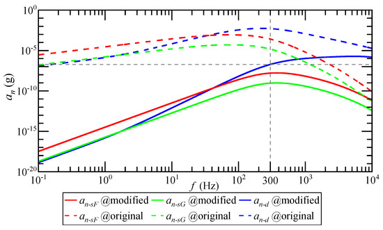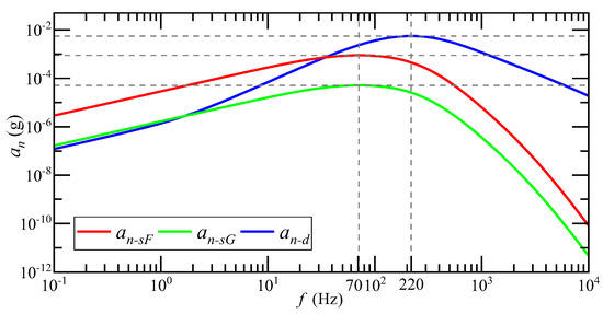 According to Equations (23), (25), and (29), the equivalent acceleration of detection noise is