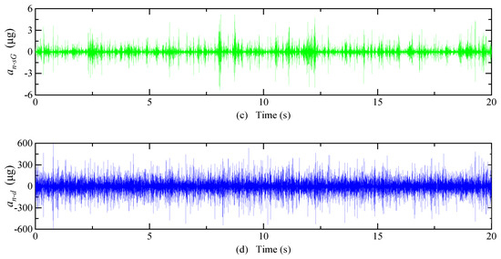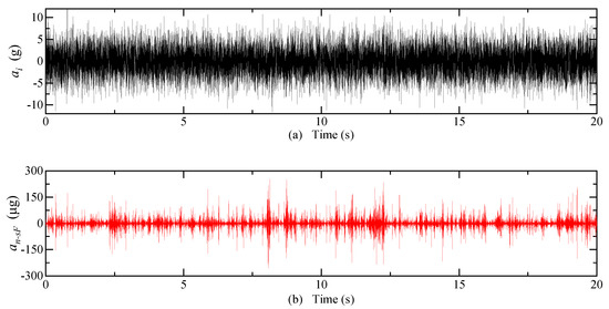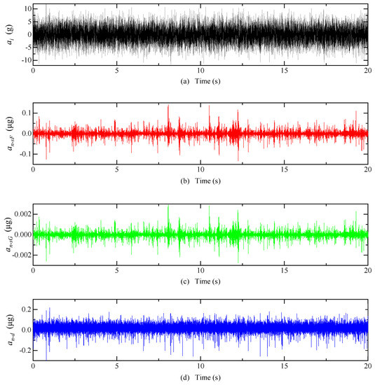 The system inputs a random acceleration of 0~10 g and a frequency of 0~300 Hz; the equivalent acceleration of detected noise after optimization is shown in Figure 18. The mean of is 1.19 × 10−3 μg, is 2.47 × 10−5 μg, and is 8.47 × 10−3 μg.