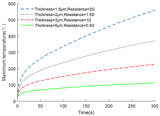- Liu, W.; Kan, W.X.; Xie, R.Z.; Ren, X.M.; Liu, L.; Yu, K.X. Simulation on transient heat response characteristics of thin-film nichrome igniter. In Proceedings of the 2021 IEEE Asia-Pacific Conference on Image Processing, Electronics and Computers (IPEC), Dalian, China, 14–16 April 2021; pp. 322–327. [Google Scholar]