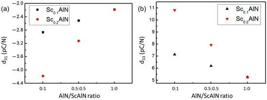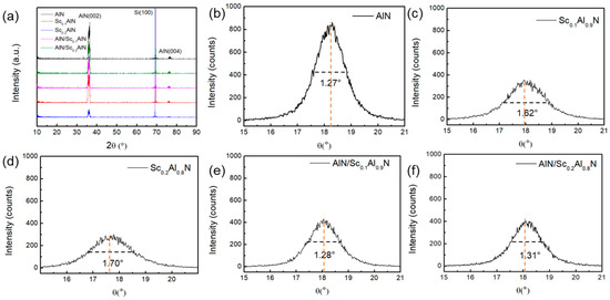 Chicago/Turabian StyleNian, Laixia, Yuanhang Qu, Xiyu Gu, Tiancheng Luo, Ying Xie, Min Wei, Yao Cai, Yan Liu, and Chengliang Sun. 2023. "Preparation, Characterization, and Application of AlN/ScAlN Composite Thin Films" Micromachines 14, no. 3: 557. https://doi.org/10.3390/mi14030557