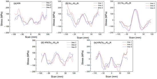- Fichtner, S.; Reimer, T.; Chemnitz, S.; Lofink, F.; Wagner, B. Stress controlled pulsed direct current co-sputtered Al1− xScxN as piezoelectric phase for micromechanical sensor applications. APL Mater. 2015, 3, 116102. [Google Scholar] [CrossRef]