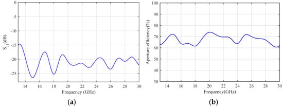 (a) Simulated S11 parameter, and (b) aperture efficiency of proposed flat lens antenna.