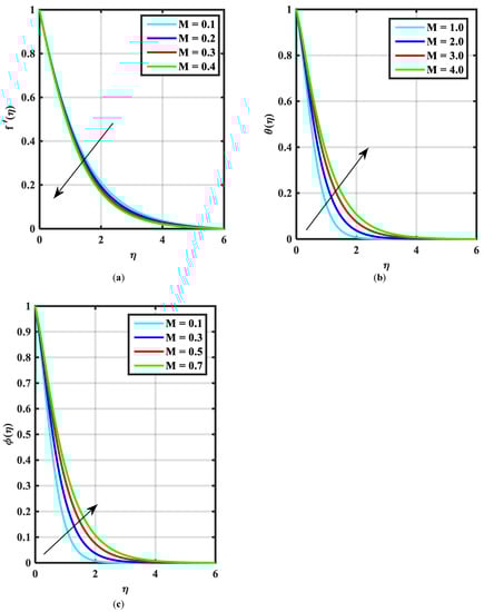 (a–c) Influence of over magnetic parameter .