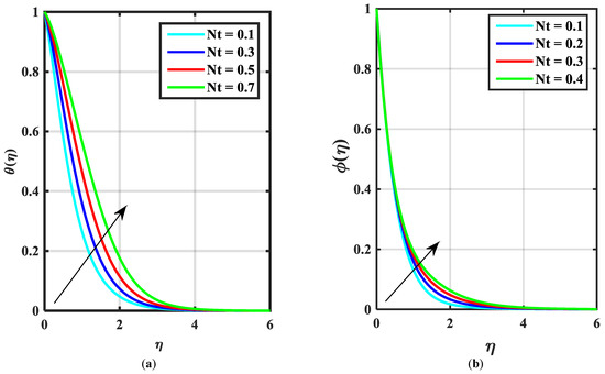 (a,b) Influence of over thermophoretic parameter .