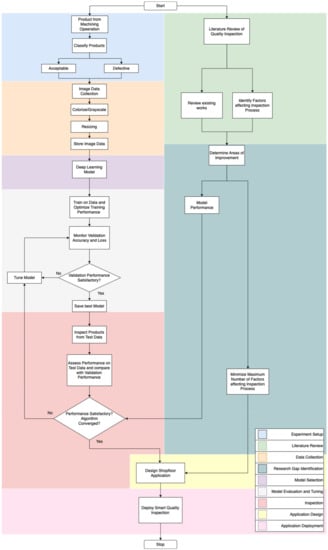 Flowchart depicting the process used to develop Smart Quality Inspection—algorithm construction and identification of research gap via literature review.