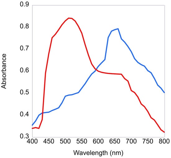 The absorption spectrum of blue and red microspheres is shown in Figure 2.