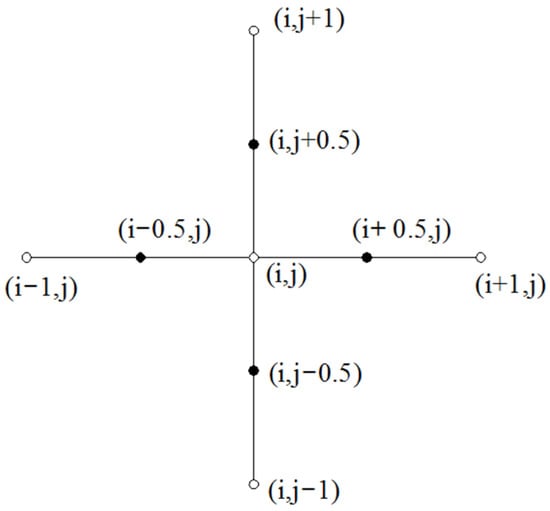 Figure 6 shows the application of the finite difference method on a single node. In order to calculate the pressure approximation at each point, a point (i,j) in the grid is taken for analysis, the pressure at point (i,j) is pi,j, and the first-order partial derivative can be approximated by the intermediate difference quotient, and the second-order partial derivative can be expressed jointly by the first-order partial derivative at a point with half of the adjacent steps and the value of the node with the same adjacent steps.