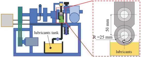 Figure 16 shows the schematic diagram of the processing principle of the friction characteristic test. If a woven bearing with roughness is not considered to be in a mixed friction state, i.e., assuming full fluid lubrication at all times, a steady flow of lubricant is provided in the reservoir. The spindle rotation brings the lubricant adhering to the bearing into the wedge gap and thus creates a dynamic pressure effect.