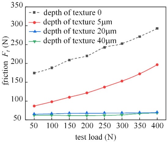 Effect of texture depth on friction characteristics (the spindle speed is 400 r/min).