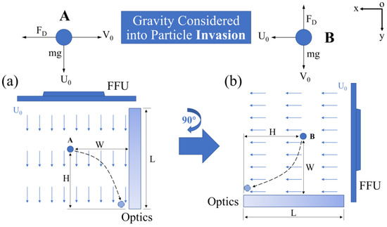 - Zhao, B.; Wu, J. Numerical investigation of particle diffusion in a clean room. Indoor Built Environ. 2005, 14, 469–479. [Google Scholar] [CrossRef]