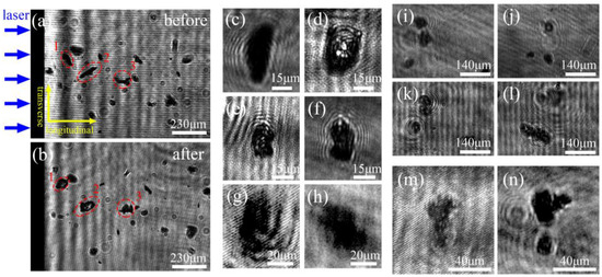 - Raman, R.N.; Negres, R.A.; Demos, S.G. Kinetics of ejected particles during breakdown in fused silica by nanosecond laser pulses. Appl. Phys. Lett. 2011, 98, 51901. [Google Scholar] [CrossRef]