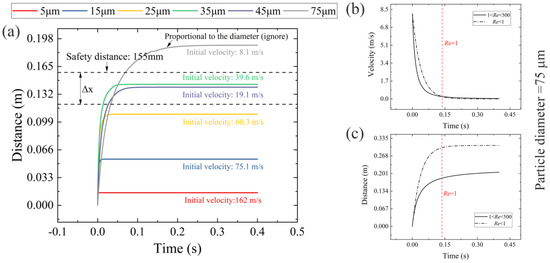 | Particle Diameter (μm) | Time to Reach Terminal Velocity (s) | Time to Reach Re = 1 in the x-Direction (s) |