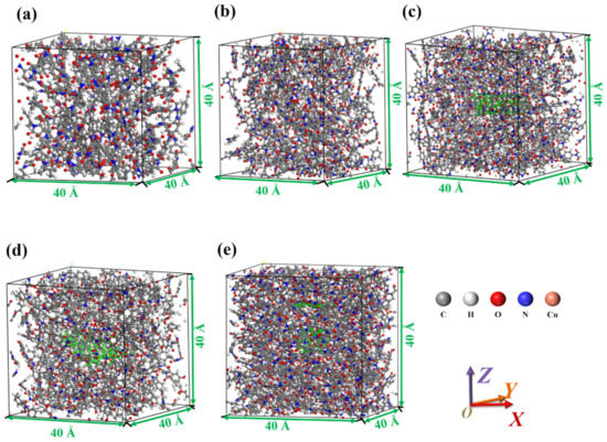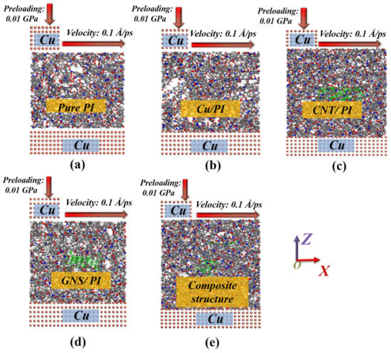 2.1. Establishment of Molecular Dynamics Model of Composite Materials
