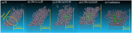 - Yang, Z.; Guo, Z.; Yuan, C.; Bai, X. Tribological behaviors of composites reinforced by different functionalized carbon nanotube using molecular dynamic simulation. Wear 2021, 476, 203669. [Google Scholar] [CrossRef]
