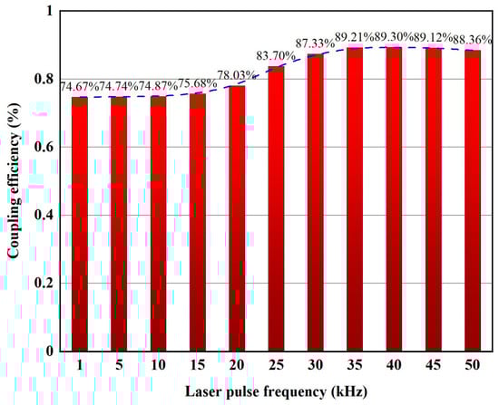 When the thickness of the water layer is 80 mm, the laser intensity (I) striking the workpiece surface is approximately 90.97% of the initial laser intensity (I0). The actual coupling efficiency of the laser intensity after passing through the coupling cavity is shown in Figure 5.